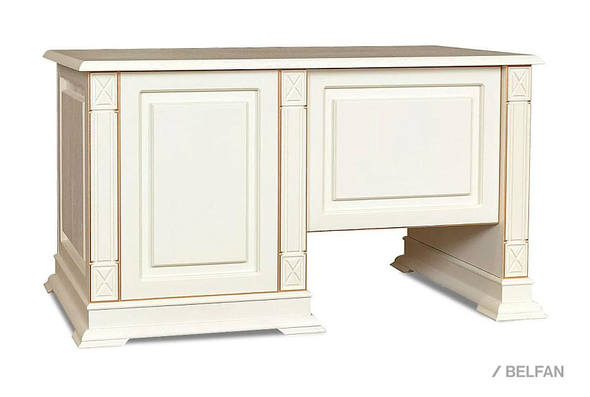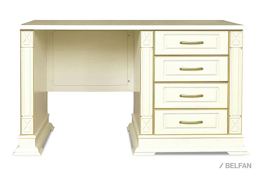 Стол письменный "Верди Люкс 9"; тумба справа; слоновая кость с золочением