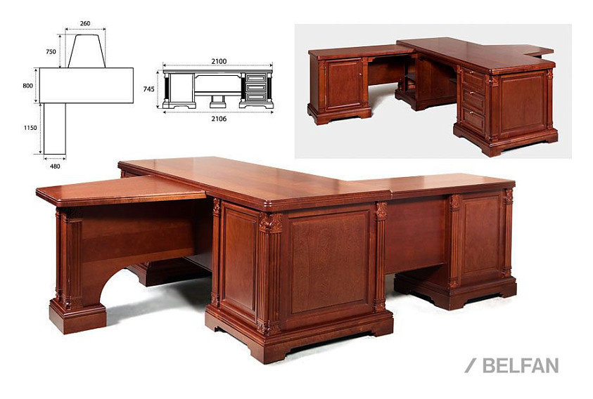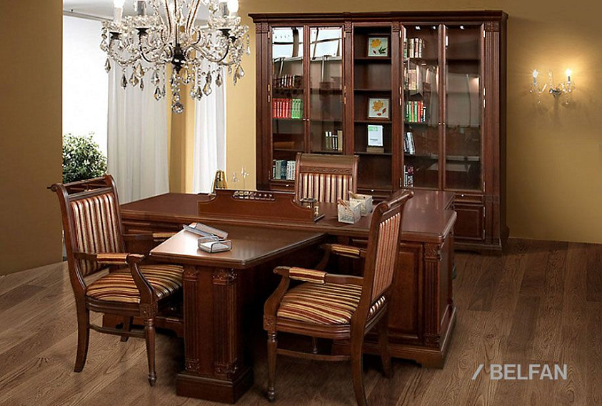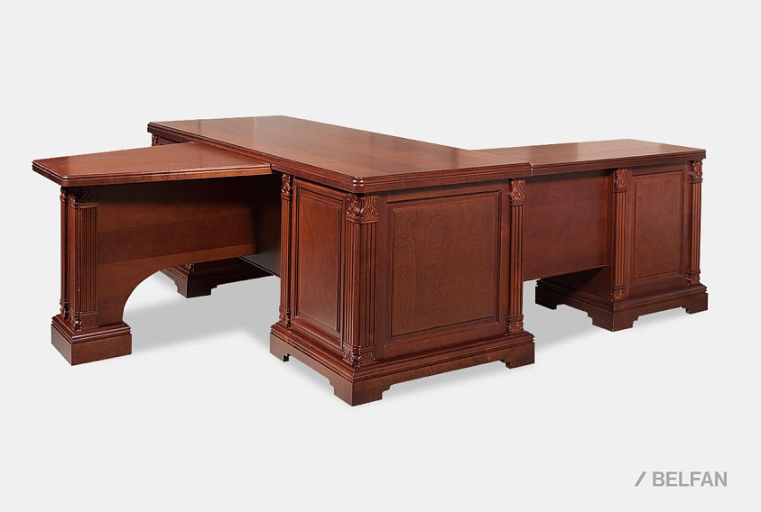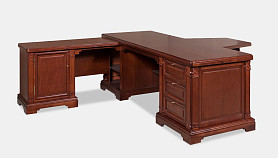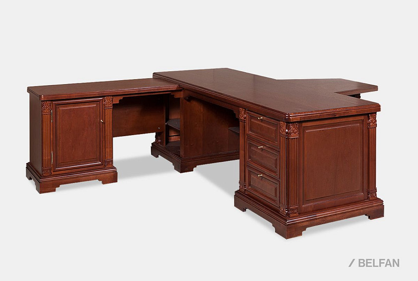 Рабочий стол из классической коллекции "Престиж" подойдет людям с высоким социальным статусом. Изготовленный из высококачественного массива и шпона берёзы, стол поражает своим благородством. Удобная глубина стола позволит оптимально разместить на нем необходимую технику, канцелярские принадлежности и расположиться самому пользователю. Резная декоративная отделка, массивность элементов и тёплые цветовые оттенки, присущие классике, подчеркнут его изысканность и ненавязчивую роскошь.