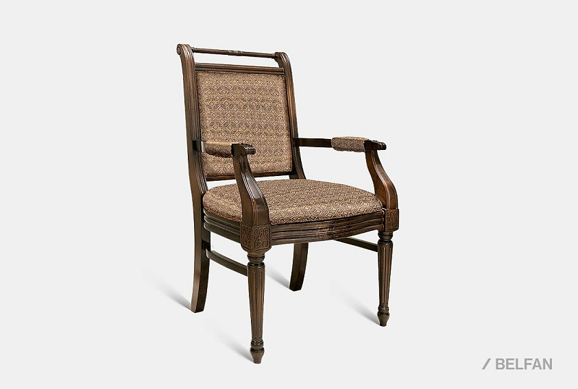 В классических традициях представлен стул с подлокотниками из коллекции «Престиж». Необычная форма резных ножек подчеркивает изысканный оттенок «мокко», «беловежский орех» и «крем с патиной». При этом главная партия в дизайне стула принадлежит, конечно, природному массиву березы, который придаст особую неподдельность вашему интерьеру. А мягкое сиденье и высокая спинка гарантируют комфортную посадку.