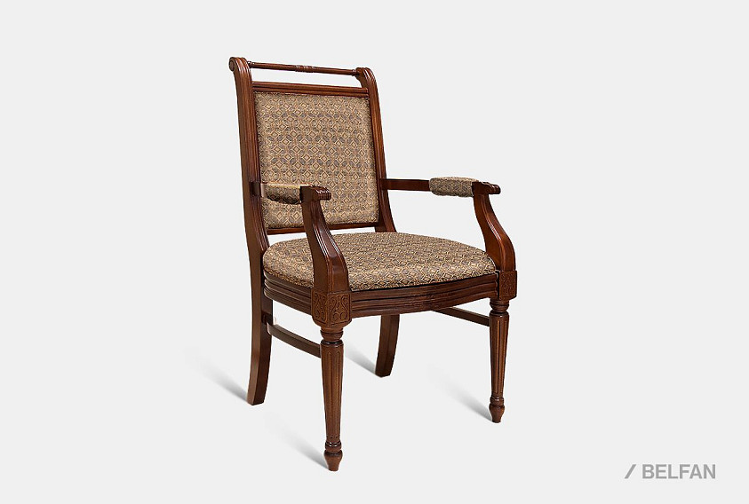 В классических традициях представлен стул с подлокотниками из коллекции «Престиж». Необычная форма резных ножек подчеркивает изысканный оттенок «мокко», «беловежский орех» и «крем с патиной». При этом главная партия в дизайне стула принадлежит, конечно, природному массиву березы, который придаст особую неподдельность вашему интерьеру. А мягкое сиденье и высокая спинка гарантируют комфортную посадку.