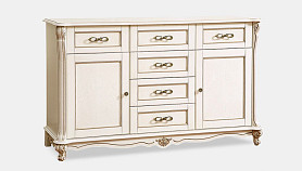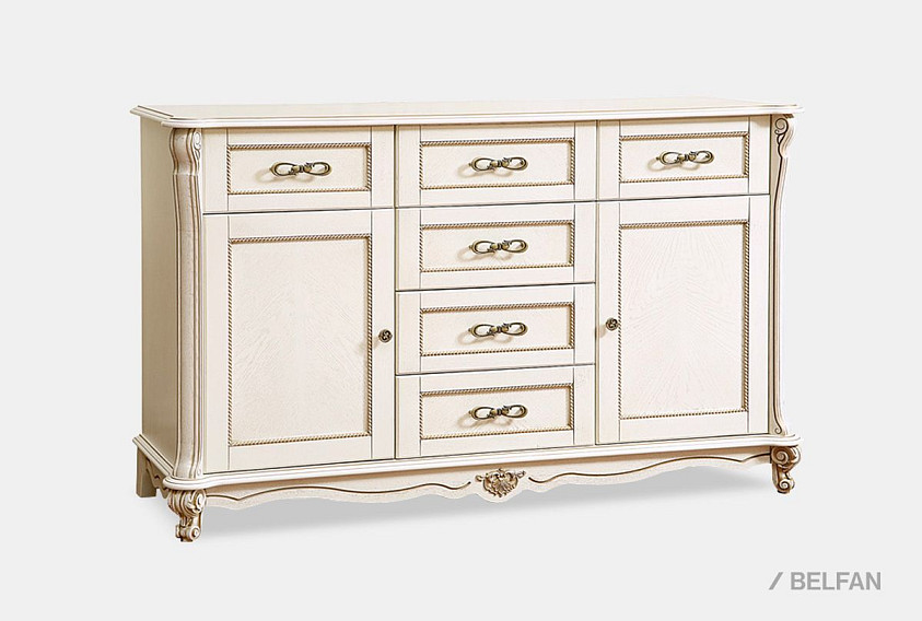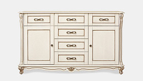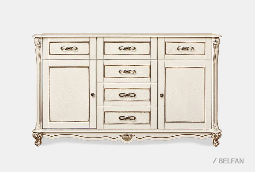 Эта универсальная тумба из коллекции «Алези» (Alezi) отлично впишется как в гостиную, столовую, так и в спальню и прихожую. В гостиной Вы можете поставить на нее телевизор; в столовой – сложить кухонные приборы, посуду, скатерти и салфетки, а в прихожей и спальне – хранить одежду: благодаря вместительным ящикам и нишам в тумбу может поместиться все то, что вы хотите спрятать от посторонних глаз. Декоративные элементы (пилястры, инкрустация по технологии маркетри и оригинальная фурнитура) привносят завершающий штрих в «образ» тумбы.