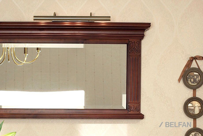 Настенное зеркало для гостиной прекрасно будет смотреться над тумбой 5951Е в гостиной из коллекции "Престиж". Несмотря на простоту, с рамой из натуральной берёзы и полочкой в основании, оно органично впишется в интерьер любого помещения.
