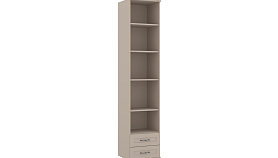 - Верхнее отделение — открытое (без фасада) с тремя съемными полками ЛДСП, в нижнем отделении — два выдвижных ящика;