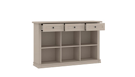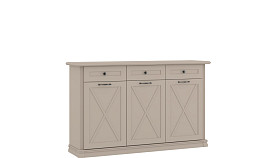 Цоколь из МДФ-профиля маскирует регулируемые металлические ножки. Глухие рамочные фасады, украшенные изящной фурнитурой в цвете «античная бронза», подчеркивают общий стиль. Комплект практичен в эксплуатации. Ящики снабжены встроенными механизмами самозакрывания. Средняя распашная дверь открывается всегда в правую сторону. Нагрузка на верхнюю крышку может достигать 10-15 кг.