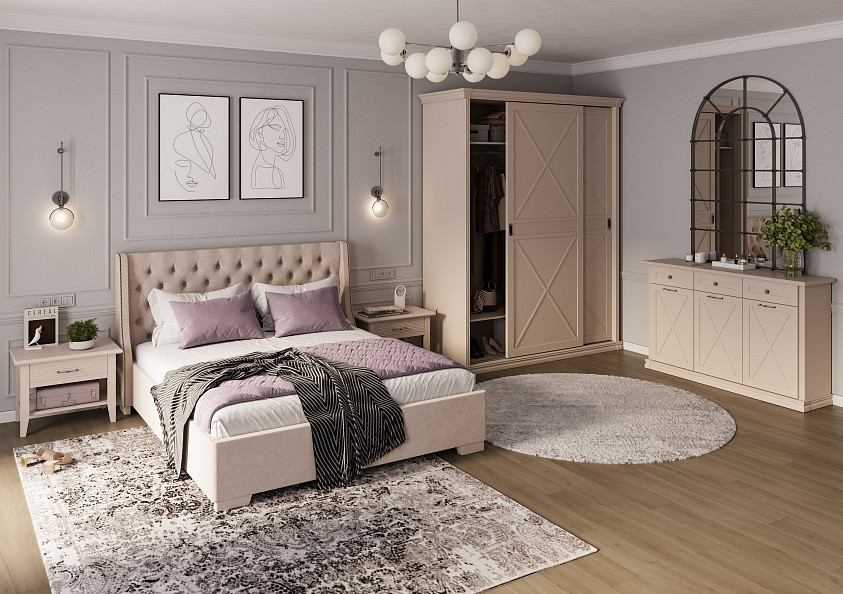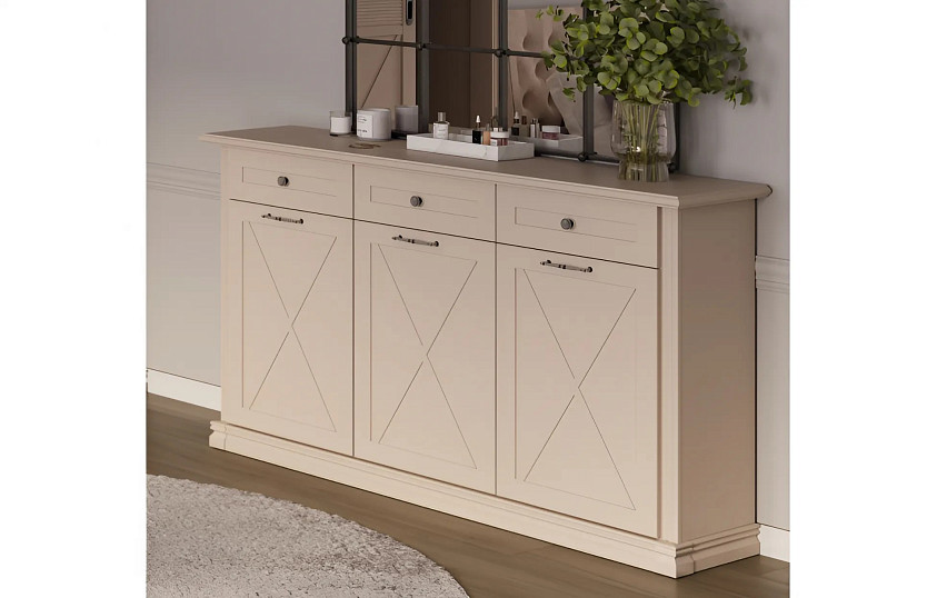 Утонченная мебель со спокойным, сдержанным дизайном подойдет для установки в детскую комнату, гостиную или спальню, будет гармонировать с интерьером в стиле классика, прованс или кантри. Во вместительных отсеках можно хранить текстиль, одежду, книги, выдвижные ящики пригодятся для размещения разнообразных аксессуаров и косметики. Филенки нестандартной формы служат органичным продолжением декоративных фахверков.