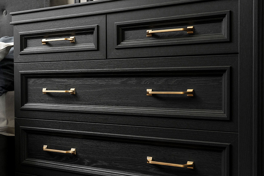 В выдвижных ящиках используются направляющие скрытого монтажа со встроенным доводчиком;