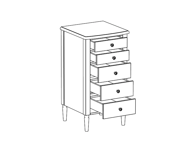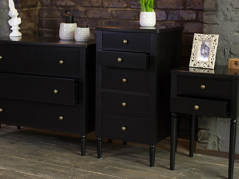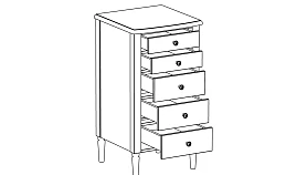 Комод имеет 5 выдвижных ящиков. Рекомендуется крепить к стене.