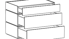 Комод выполнен в виде трех секций, установленных друг на друга.