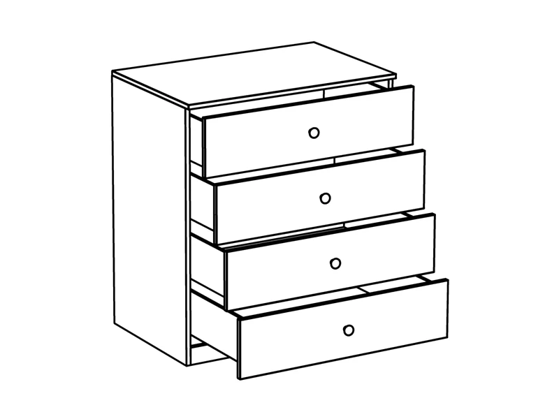 Комод имеет 4 выдвижных ящика.|Комод крепится к стене.|Ручки продаются отдельно, не входят в стоимость изделия.