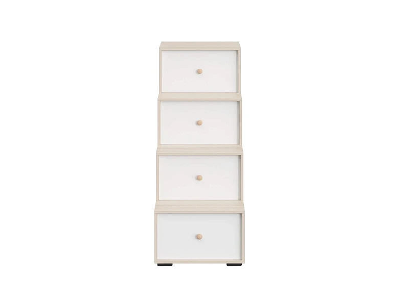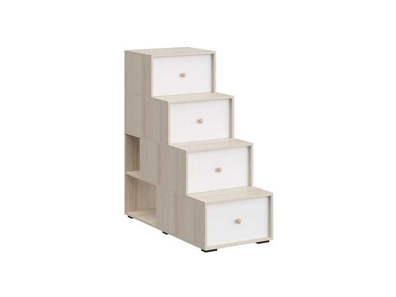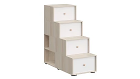 Лестница-комод состоит из четырёх ступенек. Под ступеньками имеются отделения для хранения. Сбоку лестницы есть две открытые полки. Можно устанавливать и слева и справа от кровати.