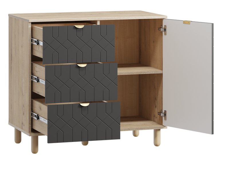 Серия Теджонс объединяет различные системы хранения - распашные шкафы, комоды и тумбы. Модели отличаются продуманной эргономикой, оригинальной декоративной фрезеровкой и натуральными оттенками. Дизайн коллекции гармонично сочетается со стилем минимализм, а также скандинавским и классическим.