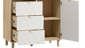 Серия Теджонс объединяет различные системы хранения - распашные шкафы, комоды и тумбы. Модели отличаются продуманной эргономикой, оригинальной декоративной фрезеровкой и натуральными оттенками. Дизайн коллекции гармонично сочетается со стилем минимализм, а также скандинавским и классическим.