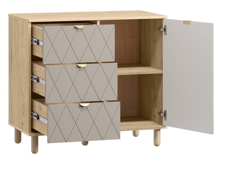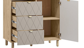 Серия Теджонс объединяет различные системы хранения - распашные шкафы, комоды и тумбы. Модели отличаются продуманной эргономикой, оригинальной декоративной фрезеровкой и натуральными оттенками. Дизайн коллекции гармонично сочетается со стилем минимализм, а также скандинавским и классическим.