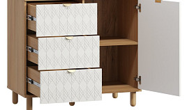Серия Теджонс объединяет различные системы хранения - распашные шкафы, комоды и тумбы. Модели отличаются продуманной эргономикой, оригинальной декоративной фрезеровкой и натуральными оттенками. Дизайн коллекции гармонично сочетается со стилем минимализм, а также скандинавским и классическим.