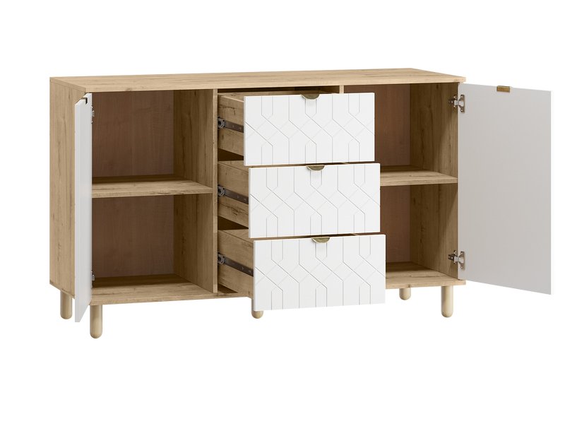 Серия Теджонс объединяет различные системы хранения - распашные шкафы, комоды и тумбы. Модели отличаются продуманной эргономикой, оригинальной декоративной фрезеровкой и натуральными оттенками. Дизайн коллекции гармонично сочетается со стилем минимализм, а также скандинавским и классическим.