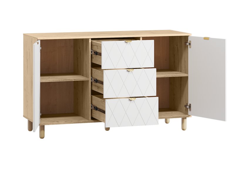 Серия Теджонс объединяет различные системы хранения - распашные шкафы, комоды и тумбы. Модели отличаются продуманной эргономикой, оригинальной декоративной фрезеровкой и натуральными оттенками. Дизайн коллекции гармонично сочетается со стилем минимализм, а также скандинавским и классическим.
