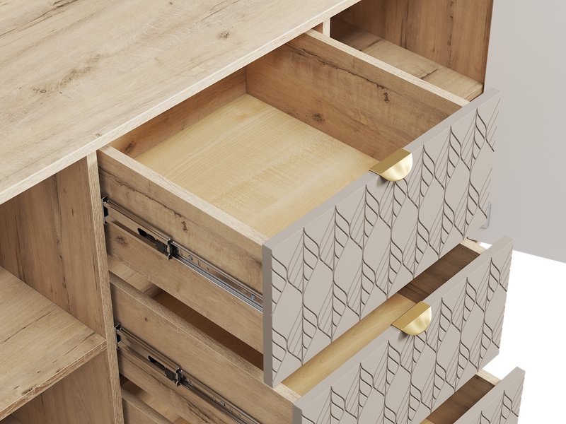 Серия Теджонс объединяет различные системы хранения - распашные шкафы, комоды и тумбы. Модели отличаются продуманной эргономикой, оригинальной декоративной фрезеровкой и натуральными оттенками. Дизайн коллекции гармонично сочетается со стилем минимализм, а также скандинавским и классическим.