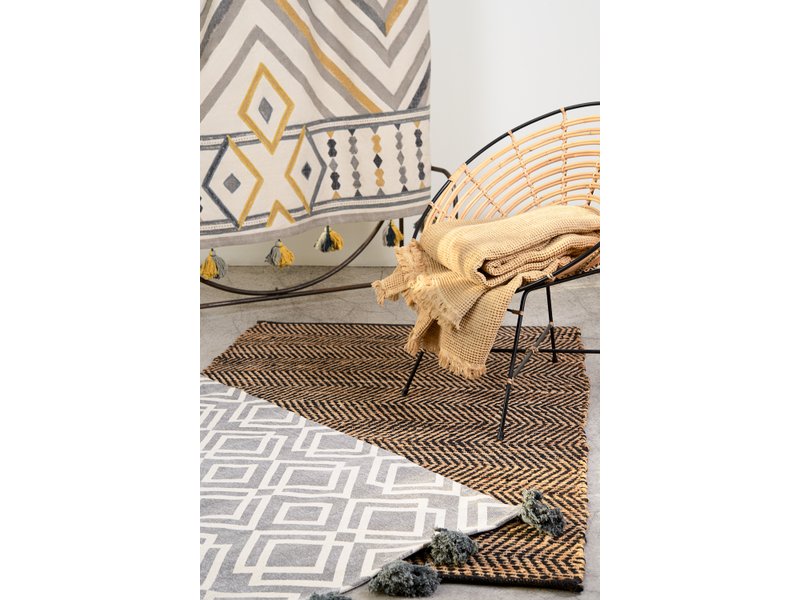 Коллекция ковров из хлопка в этническом стиле создает живой колорит в интерьере благодаря натуральным оттенкам и простому геометрическому принту. Сдержанная эклектика изделия подойдет разным настроениям дома - от экостиля до яркого фьюжена. Ковер можно использовать в качестве напольного покрытия и как декор для стен.