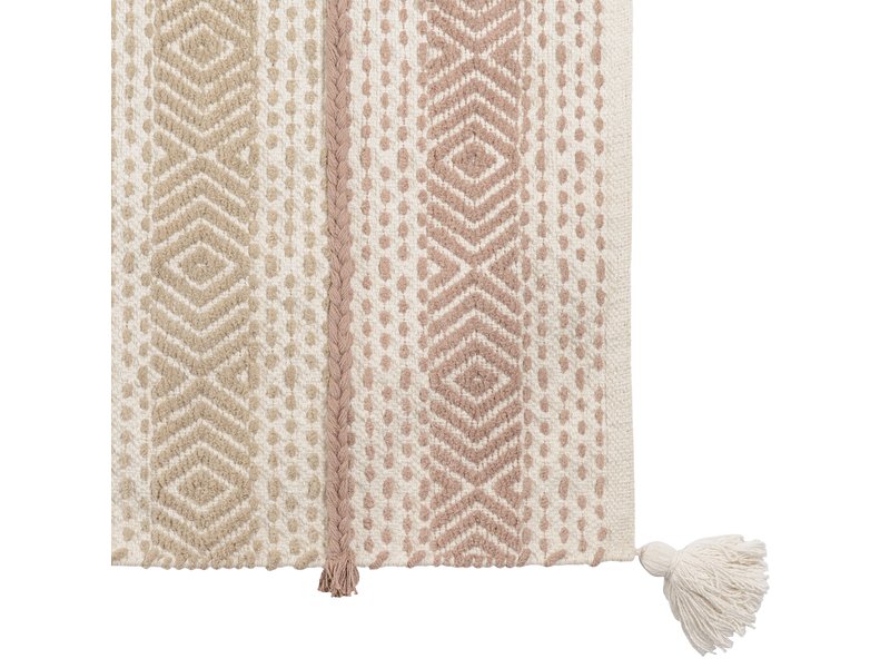 Коллекция ковров из хлопка в этническом стиле создает живой колорит в интерьере благодаря натуральным оттенкам и простому геометрическому принту. Сдержанная эклектика изделия подойдет разным настроениям дома - от экостиля до яркого фьюжена. Ковер можно использовать в качестве напольного покрытия и как декор для стен.