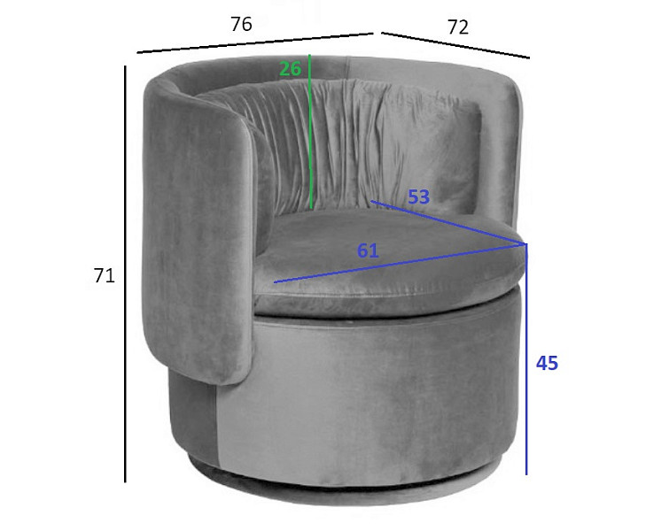 ZW-06100 Кресло поворотное велюр зеленый 76*72*71см
