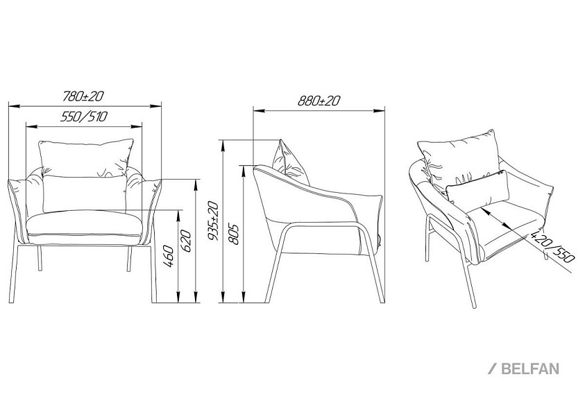 ? Глубина посадочного места с подушками приспинной и декоративной - 460 мм, с подушкой приспинной - 600 мм, без подушкек - 800 мм.