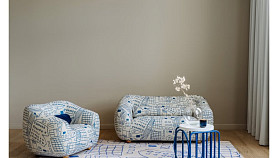 Диван прямой Тут Рядом Дом Сине-бежевый