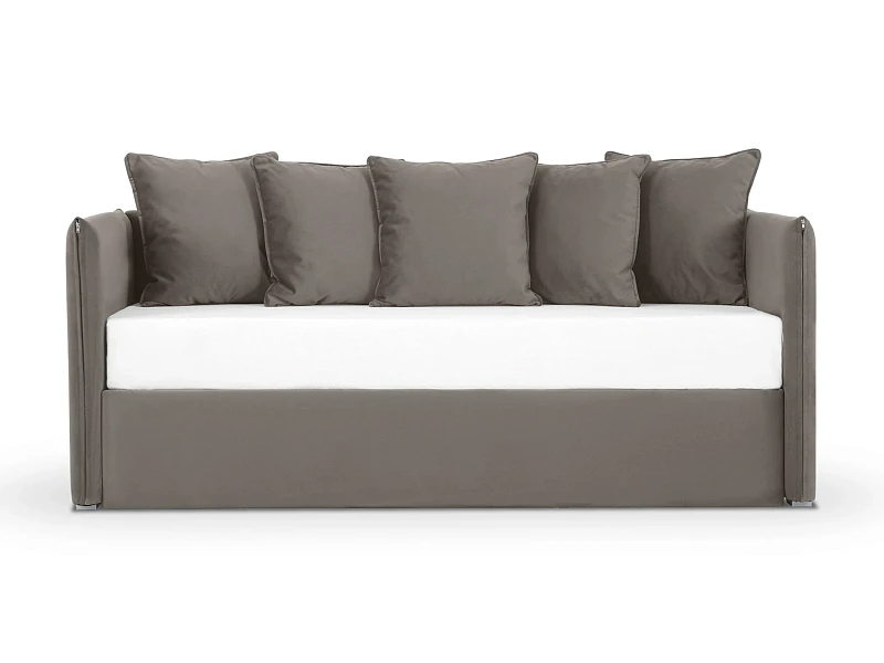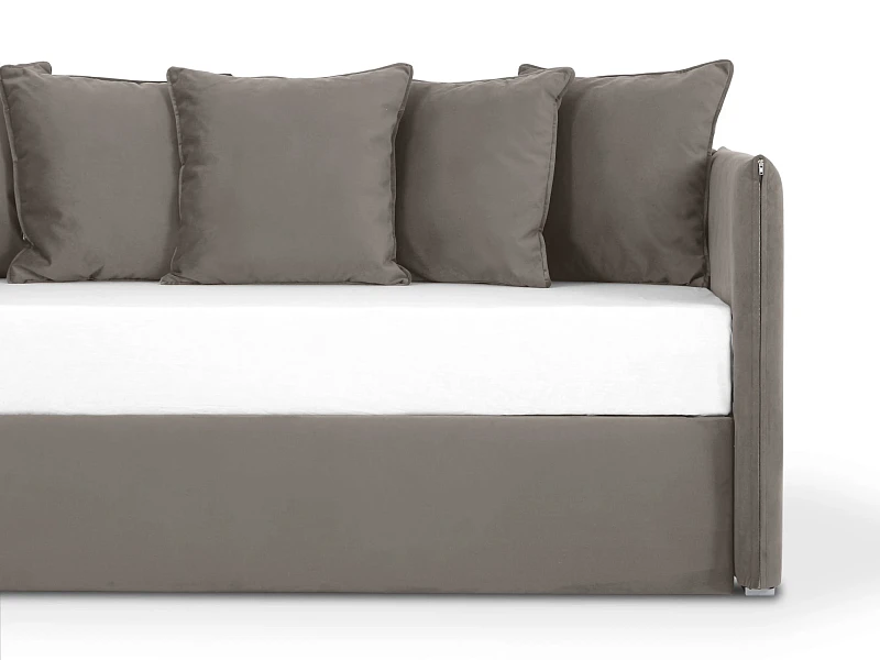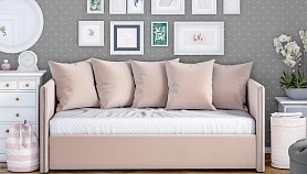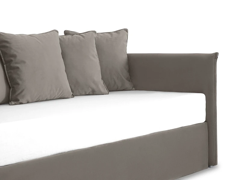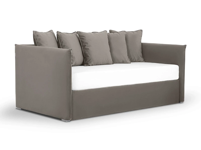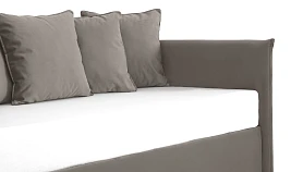 Серия Milano — функциональные кровати-кушетки с мягкими царгами. Идеальный вариант для детской или в качестве гостевого спального места. Днем может выполнять роль уютного диванчика, а ночью — комфортной кровати. Кушетка разработана с учетом регулярного сна и формирования правильной осанки. Отличная поддержка спины, равномерное распределение нагрузки. Также можно дополнить ортопедическим матрасом средней жесткости с блоком независимых пружин и натуральной кокосовой койрой, любым количеством подушек, выкатным ящиком, который можно использовать для хранения белья и в качестве ещё одного спального места. Лаконичный стиль модели подойдет для любого пространства. Персонализируйте Milano, выбирая нужный вам материал и цвет обивки.
