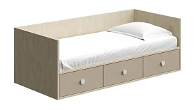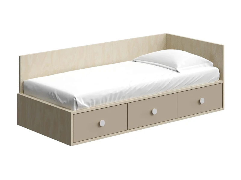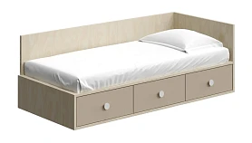 Кровать Yummy снабжена тремя выдвижными ящиками на роликовых направляющих, дно ящика выполнено из ЛДСП. В комплект кровати с высокой задней стенкой входят боковые спинки - две высокие и одна низкая, что позволяет получить кровать с двумя высокими боковыми стенками или с одной высокой, а другой низкой.