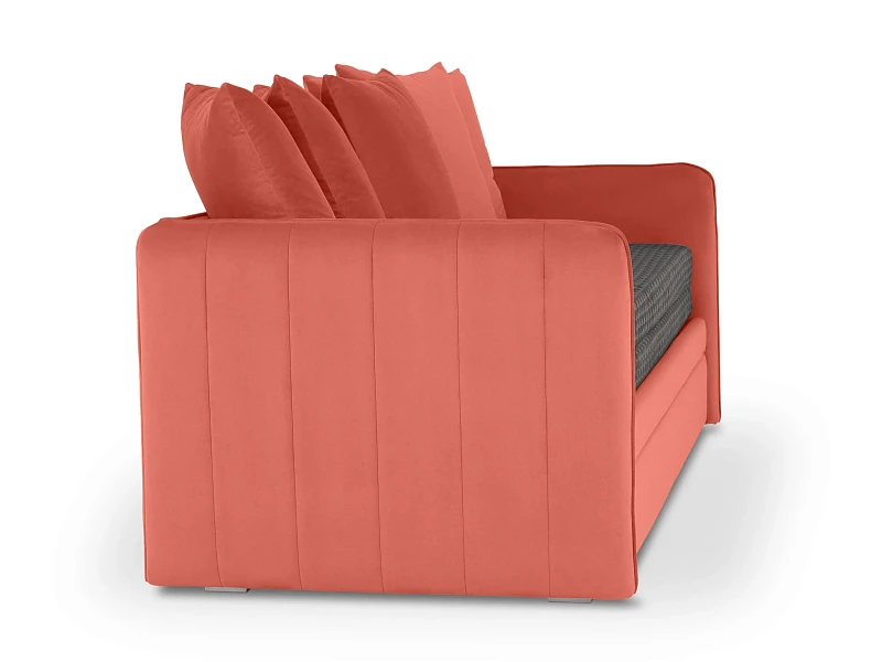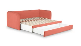 Todi — функциональная кушетка-кровать с двумя опциональными модулями. В собранном виде — это компактный диван, а в разложенном — спальное место размером 2000х1590х100 мм. Механизм трансформации — выкатной: при раскладывании достаточно выкатить вспомогательную секцию из-под сиденья и установить на нее блок ламелей. Конструкция проста и надежна для ежедневного использования. Также есть второй выкатной модуль, который можно использовать в качестве емкости для хранения или дополнительного спального места. Кушетка Todi — идеальный выбор для пространств средних и компактных размеров. Она гармонично впишется в гостиную, детскую, спальню, кухню. Каркас из деревянного бруса, в основе — породы хвойных: ель и сосна, влагостойкая березовая фанера. Мебель из этих материалов экологична, надежна и долговечна.