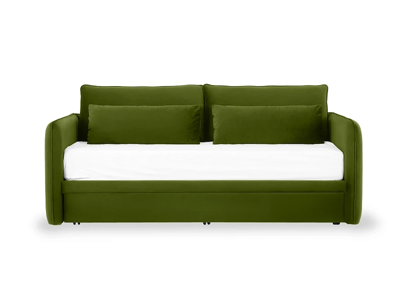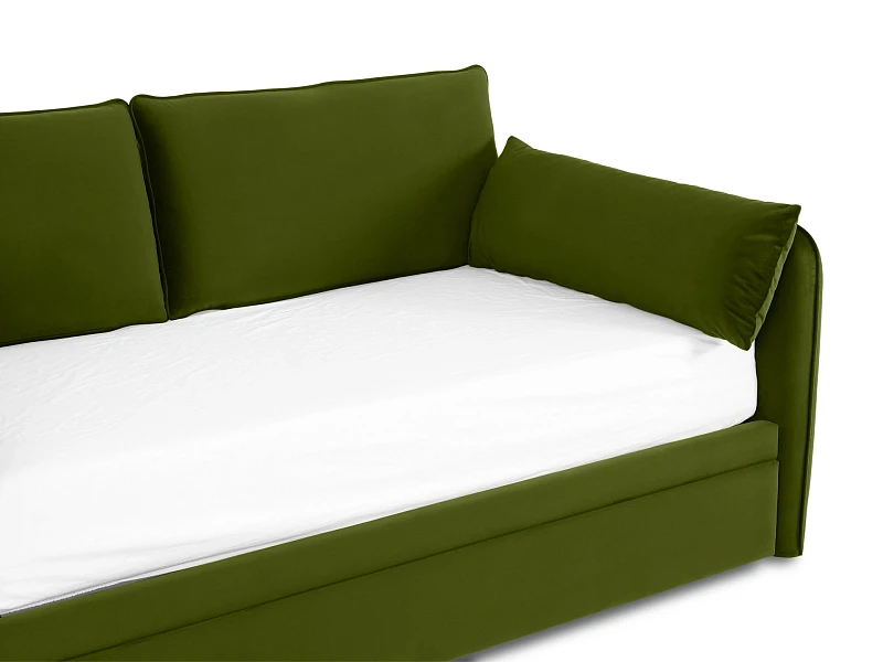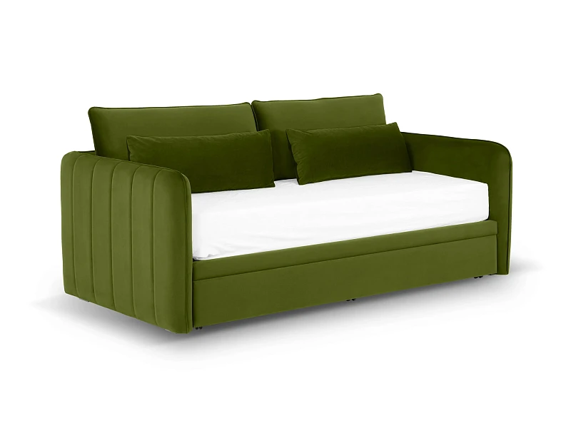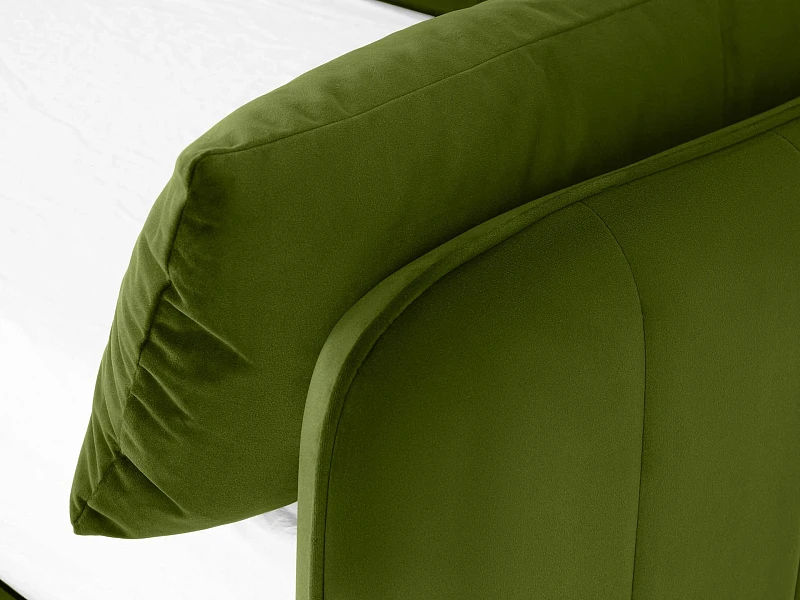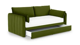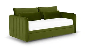 Сиденье имеет комфортную глубину и высоту, спинка оснащена двумя большими подушками из мягкого пенополиуретана, что даёт дополнительную поддержку корпусу и обеспечивает максимально расслабленные ощущения. Подлокотники также укомплектованы прямоугольными подушками из синтепуха, расположение которых можно менять по желанию. Подушки и декоративные вертикальные строчки боковин придают кушетке уютный, объёмный и многослойный вид. Выкатная секция может быть дополнительным спальным местом с нагрузкой до 100 кг. и ящиком для хранения текстиля, сезонных вещей. Можно выбрать цвет и фактуру обивки, которая будет соответствовать вашим индивидуальным предпочтениям. Стилистически нейтральная и практичная кушетка Vicari поможет в реализации разных интерьерных решений и станет элегантным дополнением домашнего пространства.