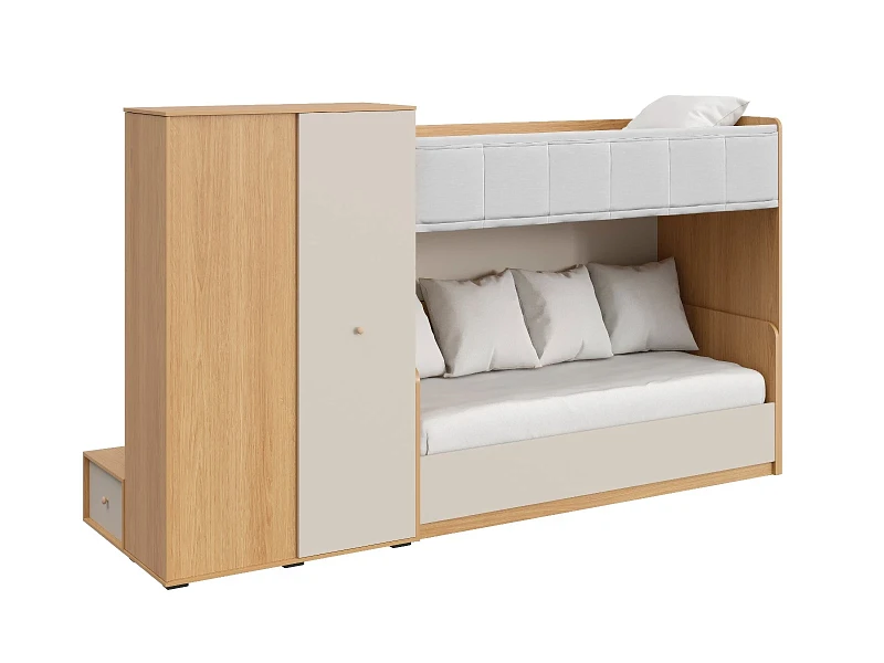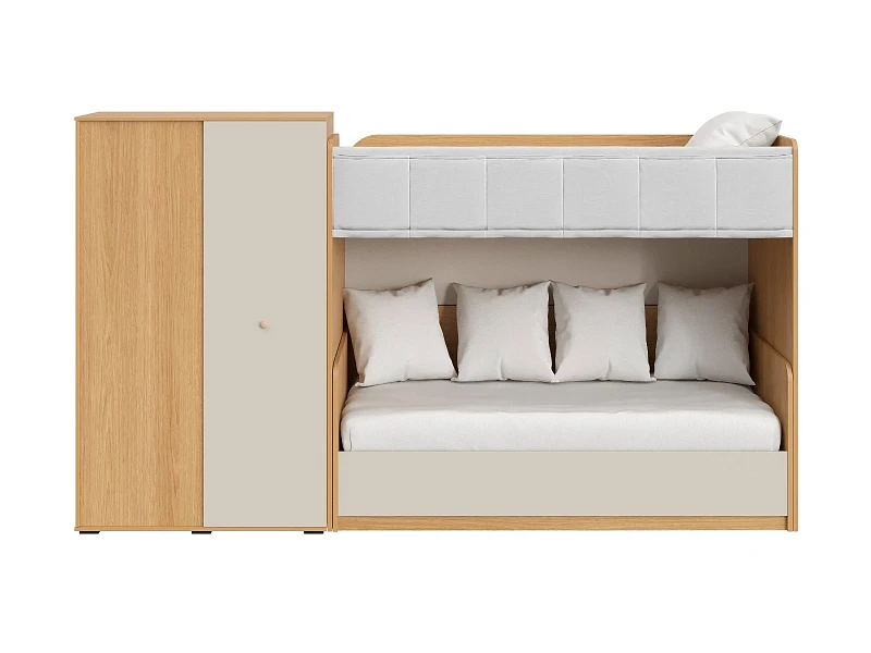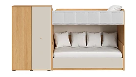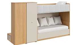 Play — коллекция модульной мебели для детской в спокойных оттенках светлого дерева с локальным добавлением ярких элементов. Естественные формы и цвета подружатся с любой стилевой темой. Подойдет как для дошкольников, так и для подростков. Изделия отвечают главным критериям детской мебели: безопасны, устойчивы, надёжны и эстетичны. Соблюдены экологические показатели, использована ЛДСП класса эмиссии Е1 и Е0,5 — для детской мебели с герметично закрытыми кромками. Из большого количества модулей вы можете спроектировать индивидуальное решение, исходя из потребностей и площади помещения. Для игровой локации, учебного места, спальной зоны, гардероба, хранения игрушек, техники и предметов для творчества — используйте модульные шкафы, стеллажи, тумбы, кровати-чердаки, столы, стеллажи-лестницы. Сквозные стеллажи идеальны в качестве перегородок в детской. Они пропускают свет, не перегружают площадь, позволяют использовать разные декоративные приёмы. Двухярусные кровати и «чердаки» удобно использовать в компактной локации. Шкафы напольные, навесные, тумбы, лаконичные столы — мебель Play поддержит атмосферу порядка и идеальный настрой на учёбу, творчество, поможет развить самостоятельность и аккуратность. Белые фасады отражают свет, освежают интерьер. С коллекцией Play вы легко создадите организованное и креативное пространство, в котором у каждой вещи есть своё место, и где ребенку комфортно учиться, играть, отдыхать, творить. Многофункциональная композиция для детской и молодежной. Ручки в стоимость изделия не включены, приобретаются отдельно.