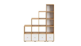 Play — коллекция модульной мебели для детской в спокойных оттенках светлого дерева с локальным добавлением ярких элементов. Естественные формы и цвета подружатся с любой стилевой темой. Подойдет как для дошкольников, так и для подростков. Изделия отвечают главным критериям детской мебели: безопасны, устойчивы, надёжны и эстетичны. Соблюдены экологические показатели, использована ЛДСП класса эмиссии Е1 и Е0,5 — для детской мебели с герметично закрытыми кромками. Из большого количества модулей вы можете спроектировать индивидуальное решение, исходя из потребностей и площади помещения. Для игровой локации, учебного места, спальной зоны, гардероба, хранения игрушек, техники и предметов для творчества — используйте модульные шкафы, стеллажи, тумбы, кровати-чердаки, столы, стеллажи-лестницы. Сквозные стеллажи идеальны в качестве перегородок в детской. Они пропускают свет, не перегружают площадь, позволяют использовать разные декоративные приёмы. Двухярусные кровати и «чердаки» удобно использовать в компактной локации. Шкафы напольные, навесные, тумбы, лаконичные столы — мебель Play поддержит атмосферу порядка и идеальный настрой на учёбу, творчество, поможет развить самостоятельность и аккуратность. Белые фасады отражают свет, освежают интерьер. С коллекцией Play вы легко создадите организованное и креативное пространство, в котором у каждой вещи есть своё место, и где ребенку комфортно учиться, играть, отдыхать, творить. Многофункциональная композиция для детской, молодежной и рабочего места. Ручки в стоимость изделия не включены, приобретаются отдельно.