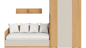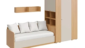 Play — коллекция модульной мебели для детской в спокойных оттенках светлого дерева с локальным добавлением ярких элементов. Естественные формы и цвета подружатся с любой стилевой темой. Подойдет как для дошкольников, так и для подростков. Изделия отвечают главным критериям детской мебели: безопасны, устойчивы, надёжны и эстетичны. Соблюдены экологические показатели, использована ЛДСП класса эмиссии Е1 и Е0,5 — для детской мебели с герметично закрытыми кромками. Из большого количества модулей вы можете спроектировать индивидуальное решение, исходя из потребностей и площади помещения. Для игровой локации, учебного места, спальной зоны, гардероба, хранения игрушек, техники и предметов для творчества — используйте модульные шкафы, стеллажи, тумбы, кровати-чердаки, столы, стеллажи-лестницы. Сквозные стеллажи идеальны в качестве перегородок в детской. Они пропускают свет, не перегружают площадь, позволяют использовать разные декоративные приёмы. Двухярусные кровати и «чердаки» удобно использовать в компактной локации. Шкафы напольные, навесные, тумбы, лаконичные столы — мебель Play поддержит атмосферу порядка и идеальный настрой на учёбу, творчество, поможет развить самостоятельность и аккуратность. Белые фасады отражают свет, освежают интерьер. С коллекцией Play вы легко создадите организованное и креативное пространство, в котором у каждой вещи есть своё место, и где ребенку комфортно учиться, играть, отдыхать, творить. Многофункциональная композиция для детской и молодежной. Ручки в стоимость изделия не включены, приобретаются отдельно.