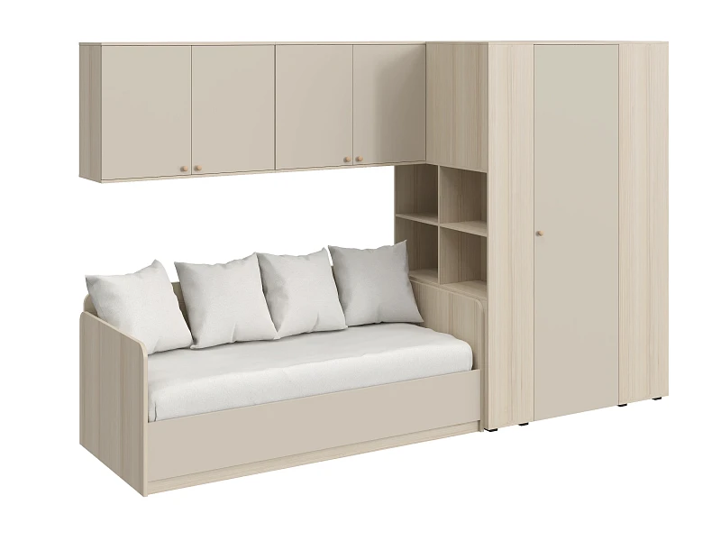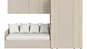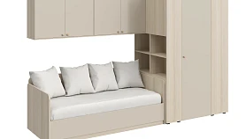 Play — коллекция модульной мебели для детской в спокойных оттенках светлого дерева с локальным добавлением ярких элементов. Естественные формы и цвета подружатся с любой стилевой темой. Подойдет как для дошкольников, так и для подростков. Изделия отвечают главным критериям детской мебели: безопасны, устойчивы, надёжны и эстетичны. Соблюдены экологические показатели, использована ЛДСП класса эмиссии Е1 и Е0,5 — для детской мебели с герметично закрытыми кромками. Из большого количества модулей вы можете спроектировать индивидуальное решение, исходя из потребностей и площади помещения. Для игровой локации, учебного места, спальной зоны, гардероба, хранения игрушек, техники и предметов для творчества — используйте модульные шкафы, стеллажи, тумбы, кровати-чердаки, столы, стеллажи-лестницы. Сквозные стеллажи идеальны в качестве перегородок в детской. Они пропускают свет, не перегружают площадь, позволяют использовать разные декоративные приёмы. Двухярусные кровати и «чердаки» удобно использовать в компактной локации. Шкафы напольные, навесные, тумбы, лаконичные столы — мебель Play поддержит атмосферу порядка и идеальный настрой на учёбу, творчество, поможет развить самостоятельность и аккуратность. Белые фасады отражают свет, освежают интерьер. С коллекцией Play вы легко создадите организованное и креативное пространство, в котором у каждой вещи есть своё место, и где ребенку комфортно учиться, играть, отдыхать, творить. Многофункциональная композиция для детской и молодежной. Ручки в стоимость изделия не включены, приобретаются отдельно.
