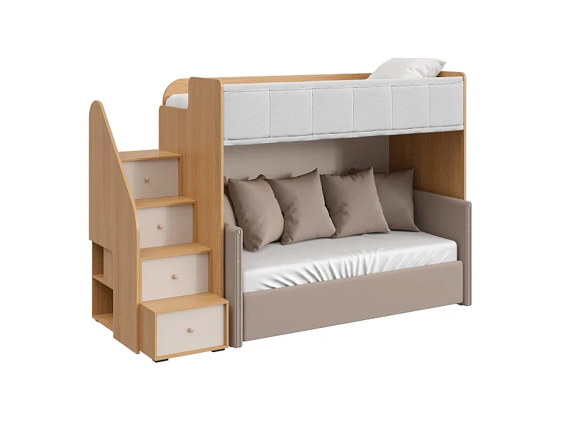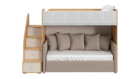 Play — коллекция модульной мебели для детской в спокойных оттенках светлого дерева с локальным добавлением ярких элементов. Естественные формы и цвета подружатся с любой стилевой темой. Подойдет как для дошкольников, так и для подростков. Изделия отвечают главным критериям детской мебели: безопасны, устойчивы, надёжны и эстетичны. Соблюдены экологические показатели, использована ЛДСП класса эмиссии Е1 и Е0,5 — для детской мебели с герметично закрытыми кромками. Из большого количества модулей вы можете спроектировать индивидуальное решение, исходя из потребностей и площади помещения. Для игровой локации, учебного места, спальной зоны, гардероба, хранения игрушек, техники и предметов для творчества — используйте модульные шкафы, стеллажи, тумбы, кровати-чердаки, столы, стеллажи-лестницы. Сквозные стеллажи идеальны в качестве перегородок в детской. Они пропускают свет, не перегружают площадь, позволяют использовать разные декоративные приёмы. Двухярусные кровати и «чердаки» удобно использовать в компактной локации. Шкафы напольные, навесные, тумбы, лаконичные столы — мебель Play поддержит атмосферу порядка и идеальный настрой на учёбу, творчество, поможет развить самостоятельность и аккуратность. Белые фасады отражают свет, освежают интерьер. С коллекцией Play вы легко создадите организованное и креативное пространство, в котором у каждой вещи есть своё место, и где ребенку комфортно учиться, играть, отдыхать, творить. Многофункциональная композиция для детской и молодежной. Ручки в стоимость изделия не включены, приобретаются отдельно.