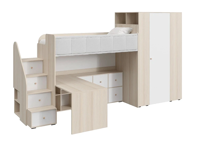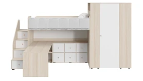 Для игровой локации, учебного места, спальной зоны, гардероба, хранения игрушек, техники и предметов для творчества — используйте модульные шкафы, стеллажи, тумбы, кровати-чердаки, столы, стеллажи-лестницы. Сквозные стеллажи идеальны в качестве перегородок в детской. Они пропускают свет, не перегружают площадь, позволяют использовать разные декоративные приёмы. Двухярусные кровати и «чердаки» удобно использовать в компактной локации. Шкафы напольные, навесные, тумбы, лаконичные столы — мебель Play поддержит атмосферу порядка и идеальный настрой на учёбу, творчество, поможет развить самостоятельность и аккуратность. Белые фасады отражают свет, освежают интерьер. С коллекцией Play вы легко создадите организованное и креативное пространство, в котором у каждой вещи есть своё место, и где ребенку комфортно учиться, играть, отдыхать, творить.