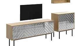 Может быть выполнена с установкой зеркального фасада или фасада из ротанга. В корпусе два отделения по одной полке в каждом. Тумба большая Boho фасад зеркальный состоит из четырех распашных дверей, по две двери на отделение. Тумба большая Boho фасад ротанг состоит из двух откидных дверей на газлифтах, по одной двери на отделение.