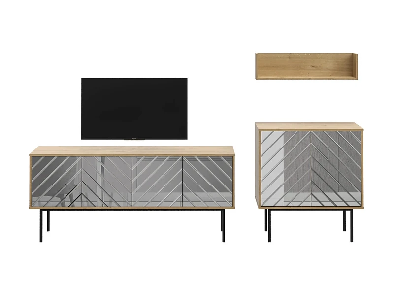Корпуса изделий изготовлены из ЛДСП 16 мм. В декоре - Дуб Корбридж. Кромки т. 0,4 мм. Задние стенки ДВПО 3,2 мм черного цвета.