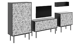 Коллекция Boho Color — более 40 комбинаций изящных тумб, шкафов, консолей с оригинальными принтами на фасадах. Узор напечатан на ЛДСП, остаётся ярким и насыщенным спустя годы использования, не выцветает, не тускнеет, смотрится красиво и актуально. Изделия станут притягательной фишкой гостиной, спальни, детской, кабинета, творческой студии, лаундж и бьюти-зоны. За их насыщенными данными скрывается функциональность, которая гарантирует удобное размещение необходимых вещей. Характерная черта серии — тонкие, но прочные металлические ножки. Которые контрастируют с четкими прямоугольными формами, что придает мебели легкий воздушный вид. Поэтому предметы Boho Color не перегружают пространство. Экзотические мотивы, растительные орнаменты, тропические цветы, колоритные узоры рисуют расслабленную атмосферу отдыха и приключений. Добавляют интерьеру многослойности, объёма, сочности, теплоты, природной энергетики. С помощью этих деталей можно задать тон общей композиции, расставить необходимые акценты или подчеркнуть индивидуальность интерьера. Высота опор 27 см. Изображение, нанесенное на фасады, устойчиво к выцветанию, истиранию и влаге. Однако длительное воздействие воды, различных растворителей, спиртосодержащих жидкостей и высоких температур, увеличивают риск повреждения целостности покрытия. Поэтому при использовании необходимо соблюдать ряд правил: 1. Протирайте поверхность с рисунком влажной (но не мокрой) тканью. 2. Используйте мягкие ткани, например, салфетки для стекла или зеркал. 3. Не используйте для обработки поверхности с нанесенным на нее рисунком чистящие порошки и средства, в состав которых входят ацетон, растворитель или спирт. 4. Не используйте металлические губки и щетки с жесткой щетиной. 5. Избегайте ударов, падения, царапания, трения изделий с фотопечатью.