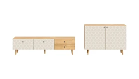Корпусная мебель, с которой можно составить множество решений для гостиной, детской, кухни, спальни, прихожей, рабочей зоны. Комоды, шкафы, тумбы, столы, витрины, полки, серванты характеризуются универсальностью, многозадачностью, надёжными устойчивыми конструкциями. Имеют выразительный внешний вид, вдохновленный направлением ретро. Смотрятся легко и воздушно за счет деревянных ножек, минимального количества декоративных элементов, спокойных природных оттенков. Их можно использовать в качестве систем хранения, элементов для зонирования, фокусных точек. В дизайне ярко выражена доминанта прямых форм, графичности, лаконичных линий и элегантного исполнения. Что даёт пространству ощущение размеренности, сбалансированности, упорядоченности. Подходят интерьерам как с нейтральной базой, так и локациям с интенсивными цветовыми блоками. Индивидуальности добавят модели с оригинальными паттернами на фасадах. Предметы коллекции Frida гармонично впишутся в эклектичные и стилизованные интерьеры. Ручки входят в стоимость изделия. Высота опор 160 мм. Изображение, нанесенное на фасады, устойчиво к выцветанию, истиранию и влаге. Однако длительное воздействие воды, различных растворителей, спиртосодержащих жидкостей и высоких температур, увеличивают риск повреждения целостности покрытия. Поэтому при использовании необходимо соблюдать ряд правил: 1. Протирайте поверхность с рисунком влажной (но не мокрой) тканью. 2. Используйте мягкие ткани, например, салфетки для стекла или зеркал. 3. Не используйте для обработки поверхности с нанесенным на нее рисунком чистящие порошки и средства, в состав которых входят ацетон, растворитель или спирт. 4. Не используйте металлические губки и щетки с жесткой щетиной. 5. Избегайте ударов, падения, царапания, трения изделий с фотопечатью.