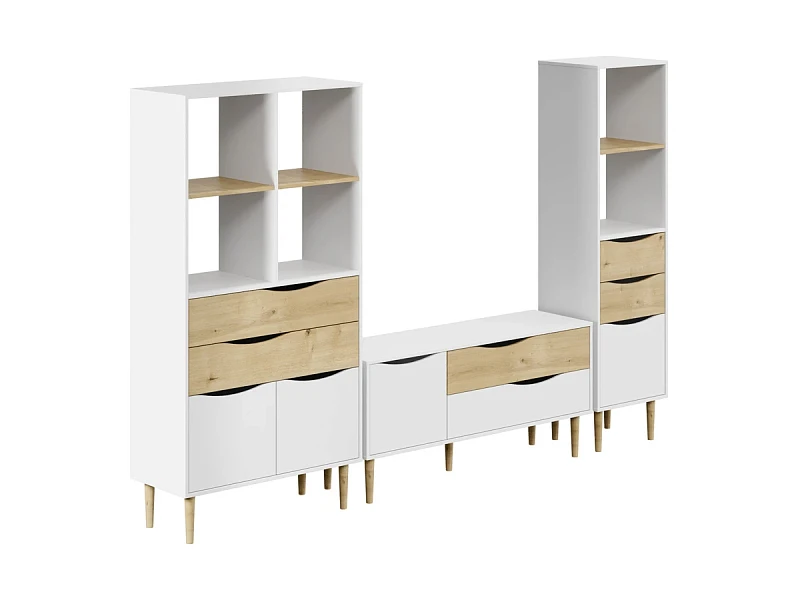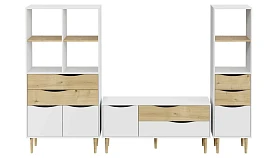Размеры отлично подходят для небольших помещений. Ножки визуально немного увеличивают пространство. Удобные полки вмещают все самое необходимое: книги, журналы, DVD-диски. Поставьте в сервант рамки с фотографиями дорогих вам людей. Используйте необычные аксессуары, предметы дизайна, возможно, небольшие растения, чтобы немного освежить композицию.
