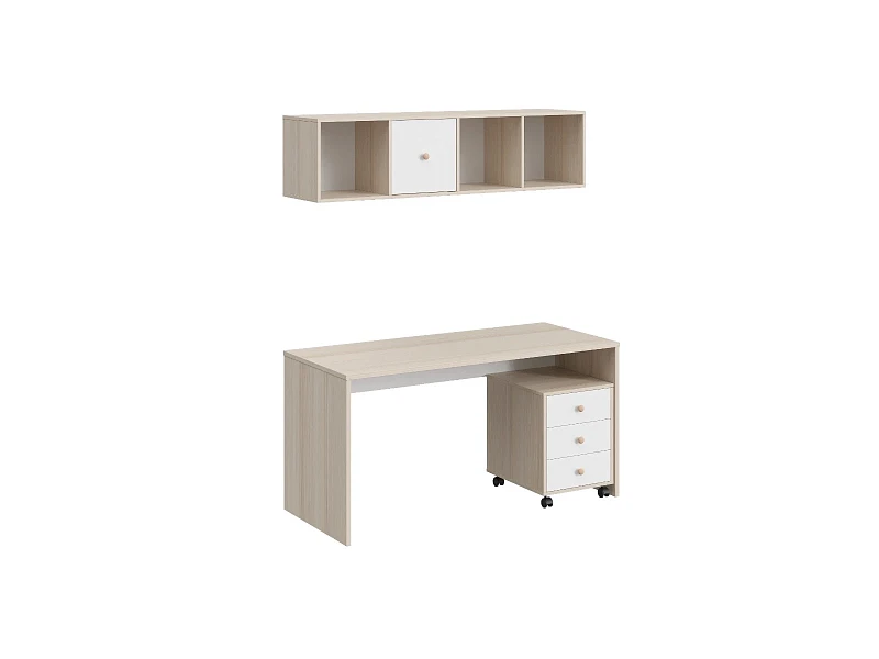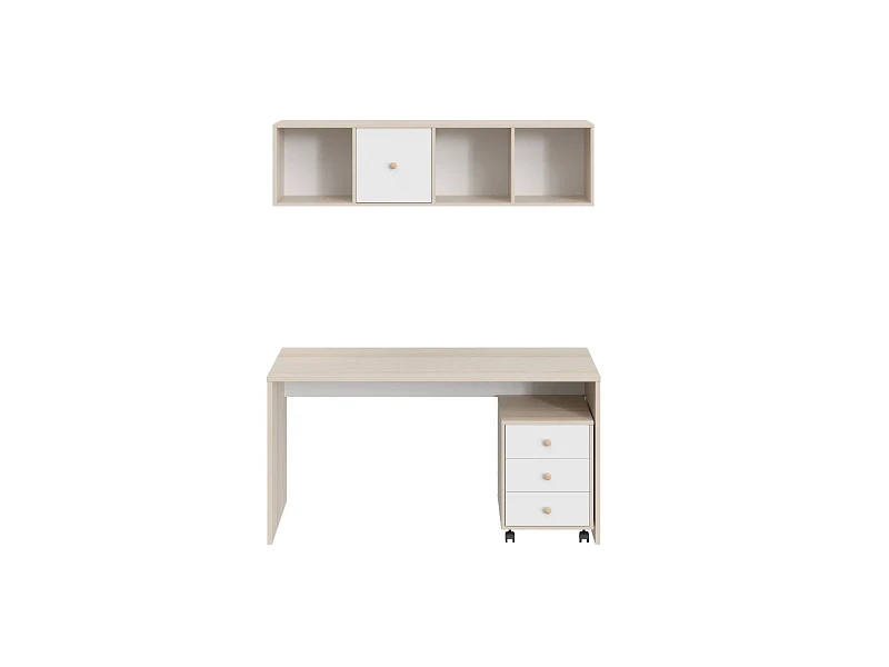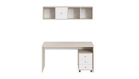 Play — коллекция модульной мебели для детской в спокойных оттенках светлого дерева с локальным добавлением ярких элементов. Естественные формы и цвета подружатся с любой стилевой темой. Подойдет как для дошкольников, так и для подростков. Изделия отвечают главным критериям детской мебели: безопасны, устойчивы, надёжны и эстетичны. Соблюдены экологические показатели, использована ЛДСП класса эмиссии Е1 и Е0,5 — для детской мебели с герметично закрытыми кромками. Из большого количества модулей вы можете спроектировать индивидуальное решение, исходя из потребностей и площади помещения. Для игровой локации, учебного места, спальной зоны, гардероба, хранения игрушек, техники и предметов для творчества — используйте модульные шкафы, стеллажи, тумбы, кровати-чердаки, столы, стеллажи-лестницы. Сквозные стеллажи идеальны в качестве перегородок в детской. Они пропускают свет, не перегружают площадь, позволяют использовать разные декоративные приёмы. Двухярусные кровати и «чердаки» удобно использовать в компактной локации. Шкафы напольные, навесные, тумбы, лаконичные столы — мебель Play поддержит атмосферу порядка и идеальный настрой на учёбу, творчество, поможет развить самостоятельность и аккуратность. Белые фасады отражают свет, освежают интерьер. С коллекцией Play вы легко создадите организованное и креативное пространство, в котором у каждой вещи есть своё место, и где ребенку комфортно учиться, играть, отдыхать, творить. Многофункциональная композиция для детской, молодежной и рабочего места. Ручки в стоимость изделия не включены, приобретаются отдельно.