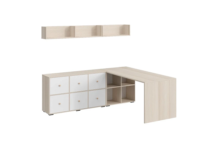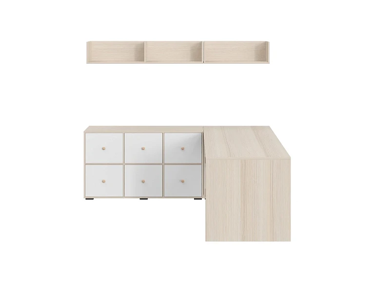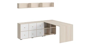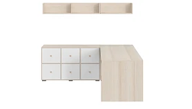 Play — коллекция модульной мебели для детской в спокойных оттенках светлого дерева с локальным добавлением ярких элементов. Естественные формы и цвета подружатся с любой стилевой темой. Подойдет как для дошкольников, так и для подростков. Изделия отвечают главным критериям детской мебели: безопасны, устойчивы, надёжны и эстетичны. Соблюдены экологические показатели, использована ЛДСП класса эмиссии Е1 и Е0,5 — для детской мебели с герметично закрытыми кромками. Из большого количества модулей вы можете спроектировать индивидуальное решение, исходя из потребностей и площади помещения. Для игровой локации, учебного места, спальной зоны, гардероба, хранения игрушек, техники и предметов для творчества — используйте модульные шкафы, стеллажи, тумбы, кровати-чердаки, столы, стеллажи-лестницы. Сквозные стеллажи идеальны в качестве перегородок в детской. Они пропускают свет, не перегружают площадь, позволяют использовать разные декоративные приёмы. Двухярусные кровати и «чердаки» удобно использовать в компактной локации. Шкафы напольные, навесные, тумбы, лаконичные столы — мебель Play поддержит атмосферу порядка и идеальный настрой на учёбу, творчество, поможет развить самостоятельность и аккуратность. Белые фасады отражают свет, освежают интерьер. С коллекцией Play вы легко создадите организованное и креативное пространство, в котором у каждой вещи есть своё место, и где ребенку комфортно учиться, играть, отдыхать, творить. Многофункциональная композиция для детской, молодежной и рабочего места. Ручки в стоимость изделия не включены, приобретаются отдельно.