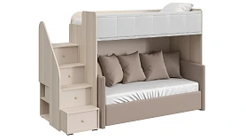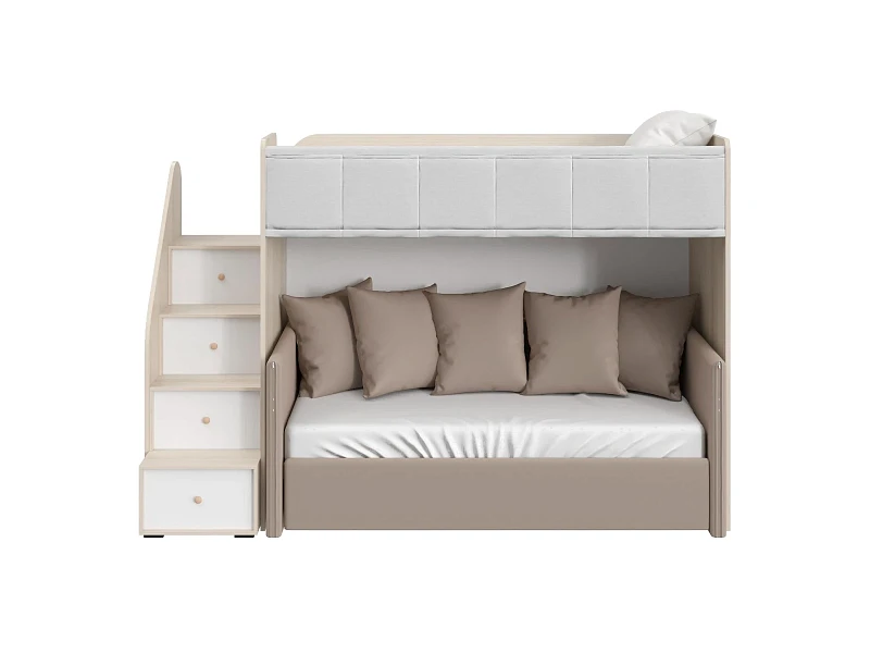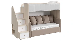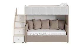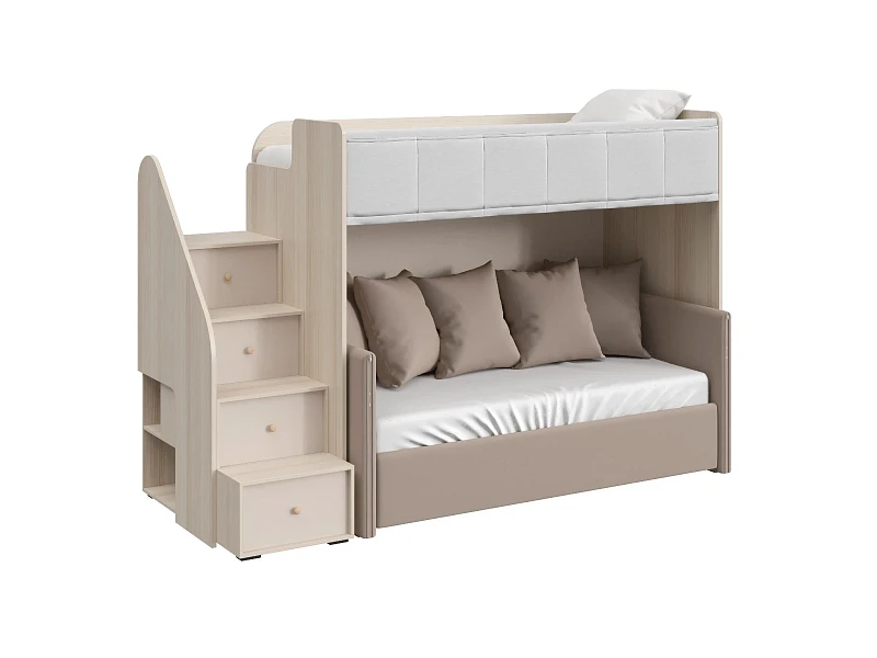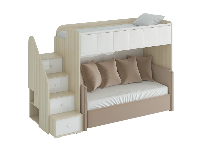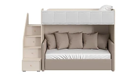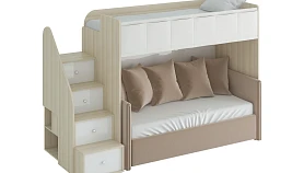 Play — коллекция модульной мебели для детской в спокойных оттенках светлого дерева с локальным добавлением ярких элементов. Естественные формы и цвета подружатся с любой стилевой темой. Подойдет как для дошкольников, так и для подростков. Изделия отвечают главным критериям детской мебели: безопасны, устойчивы, надёжны и эстетичны. Соблюдены экологические показатели, использована ЛДСП класса эмиссии Е1 и Е0,5 — для детской мебели с герметично закрытыми кромками. Из большого количества модулей вы можете спроектировать индивидуальное решение, исходя из потребностей и площади помещения. Для игровой локации, учебного места, спальной зоны, гардероба, хранения игрушек, техники и предметов для творчества — используйте модульные шкафы, стеллажи, тумбы, кровати-чердаки, столы, стеллажи-лестницы. Сквозные стеллажи идеальны в качестве перегородок в детской. Они пропускают свет, не перегружают площадь, позволяют использовать разные декоративные приёмы. Двухярусные кровати и «чердаки» удобно использовать в компактной локации. Шкафы напольные, навесные, тумбы, лаконичные столы — мебель Play поддержит атмосферу порядка и идеальный настрой на учёбу, творчество, поможет развить самостоятельность и аккуратность. Белые фасады отражают свет, освежают интерьер. С коллекцией Play вы легко создадите организованное и креативное пространство, в котором у каждой вещи есть своё место, и где ребенку комфортно учиться, играть, отдыхать, творить. Многофункциональная композиция для детской и молодежной. Ручки в стоимость изделия не включены, приобретаются отдельно.