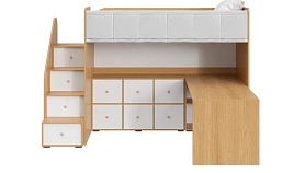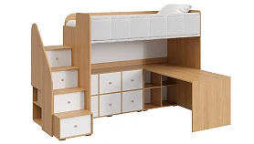 Play — коллекция модульной мебели для детской в спокойных оттенках светлого дерева с локальным добавлением ярких элементов. Естественные формы и цвета подружатся с любой стилевой темой. Подойдет как для дошкольников, так и для подростков. Изделия отвечают главным критериям детской мебели: безопасны, устойчивы, надёжны и эстетичны. Соблюдены экологические показатели, использована ЛДСП класса эмиссии Е1 и Е0,5 — для детской мебели с герметично закрытыми кромками. Из большого количества модулей вы можете спроектировать индивидуальное решение, исходя из потребностей и площади помещения. Для игровой локации, учебного места, спальной зоны, гардероба, хранения игрушек, техники и предметов для творчества — используйте модульные шкафы, стеллажи, тумбы, кровати-чердаки, столы, стеллажи-лестницы. Сквозные стеллажи идеальны в качестве перегородок в детской. Они пропускают свет, не перегружают площадь, позволяют использовать разные декоративные приёмы. Двухярусные кровати и «чердаки» удобно использовать в компактной локации. Шкафы напольные, навесные, тумбы, лаконичные столы — мебель Play поддержит атмосферу порядка и идеальный настрой на учёбу, творчество, поможет развить самостоятельность и аккуратность. Белые фасады отражают свет, освежают интерьер. С коллекцией Play вы легко создадите организованное и креативное пространство, в котором у каждой вещи есть своё место, и где ребенку комфортно учиться, играть, отдыхать, творить. Многофункциональная композиция для детской и молодежной. Ручки в стоимость изделия не включены, приобретаются отдельно.