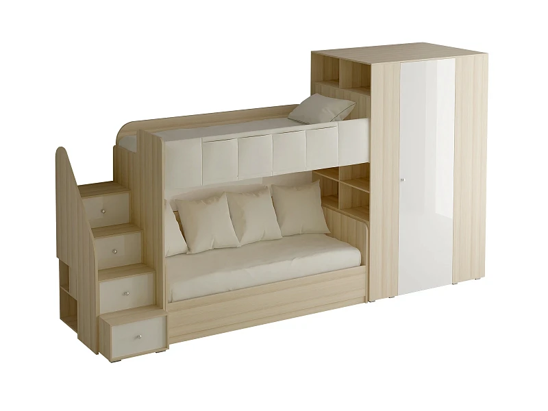 Для игровой локации, учебного места, спальной зоны, гардероба, хранения игрушек, техники и предметов для творчества — используйте модульные шкафы, стеллажи, тумбы, кровати-чердаки, столы, стеллажи-лестницы. Сквозные стеллажи идеальны в качестве перегородок в детской. Они пропускают свет, не перегружают площадь, позволяют использовать разные декоративные приёмы. Двухярусные кровати и «чердаки» удобно использовать в компактной локации. Шкафы напольные, навесные, тумбы, лаконичные столы — мебель Play поддержит атмосферу порядка и идеальный настрой на учёбу, творчество, поможет развить самостоятельность и аккуратность. Белые фасады отражают свет, освежают интерьер. С коллекцией Play вы легко создадите организованное и креативное пространство, в котором у каждой вещи есть своё место, и где ребенку комфортно учиться, играть, отдыхать, творить.