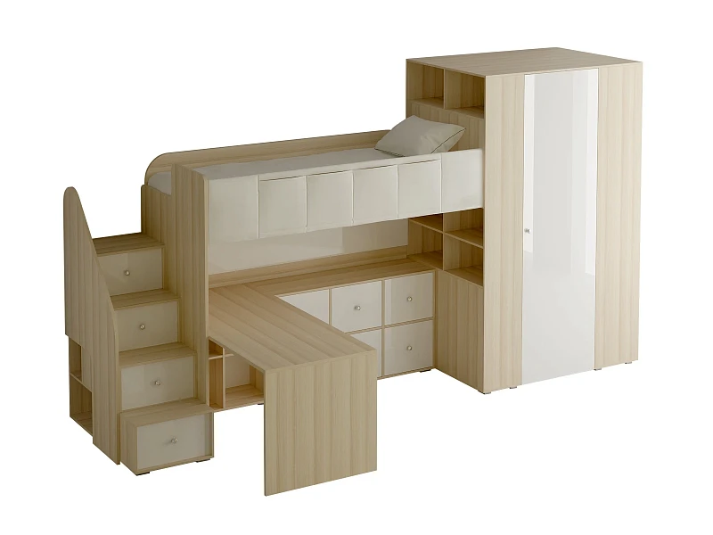Для игровой локации, учебного места, спальной зоны, гардероба, хранения игрушек, техники и предметов для творчества — используйте модульные шкафы, стеллажи, тумбы, кровати-чердаки, столы, стеллажи-лестницы. Сквозные стеллажи идеальны в качестве перегородок в детской. Они пропускают свет, не перегружают площадь, позволяют использовать разные декоративные приёмы. Двухярусные кровати и «чердаки» удобно использовать в компактной локации. Шкафы напольные, навесные, тумбы, лаконичные столы — мебель Play поддержит атмосферу порядка и идеальный настрой на учёбу, творчество, поможет развить самостоятельность и аккуратность. Белые фасады отражают свет, освежают интерьер. С коллекцией Play вы легко создадите организованное и креативное пространство, в котором у каждой вещи есть своё место, и где ребенку комфортно учиться, играть, отдыхать, творить.