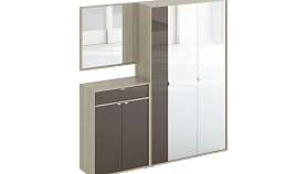 Latte — дизайнерская коллекция функциональной корпусной мебели для прихожей. Основу составляют базовые изделия с благородным минималистичным внешним видом: шкафы, комоды, обувницы, вешалки для одежды. Концепт — современный дизайн, выраженный в легкости визуального восприятия. В центре внимания: светлые оттенки, зеркальные и глянцевые поверхности, строгая геометрия, отсутствие декора. Для индивидуальных интерьерных решений несколько вариантов фасадов: ЛДСП, зеркало, стекло в белом и в оттенке капучино. Бликующие поверхности не утяжеляют и не «съедают» свет, а наполняют локацию свежестью, воздушностью, дружелюбной атмосферой, придают динамику, визуальный объём. Подходят как для компактных пространств, так и для больших помещений. С Latte вы составите индивидуальную композицию для удобного хранения вещей по категориям и поддержите порядок в доме. Композиция для прихожей