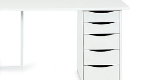 Для большого количества техники, канцелярии, специального оборудования подойдут просторные столешницы с большими стеллажами, а для ноутбука и блокнота достаточно компактного стола, который не займет много места. Архитектура предметов максимально простая, смотрится легко и не загромождает пространство. Материал столешниц — ЛДСП, основание — металл. Качественные и надежные материалы гармонично вписывается в большинство актуальных интерьерных стилей. Тумбы на регулируемых ножках. Ящики на роликовых направляющих. Фасады без ручек, с фигурной выемкой для открывания за кромку. К вашему выбору —большое количество сочетаний столешниц и оснований, стеллажей, тумб, что позволяет создать комбинацию, максимально отвечающую индивидуальным потребностям.