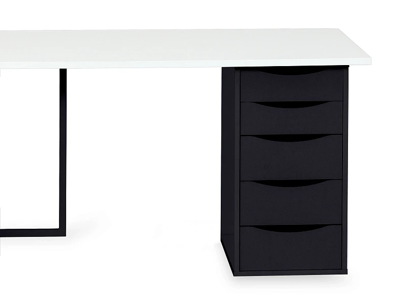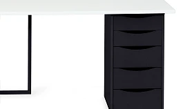 Для большого количества техники, канцелярии, специального оборудования подойдут просторные столешницы с большими стеллажами, а для ноутбука и блокнота достаточно компактного стола, который не займет много места. Архитектура предметов максимально простая, смотрится легко и не загромождает пространство. Материал столешниц — ЛДСП, основание — металл. Качественные и надежные материалы гармонично вписывается в большинство актуальных интерьерных стилей. Тумбы на регулируемых ножках. Ящики на роликовых направляющих. Фасады без ручек, с фигурной выемкой для открывания за кромку. К вашему выбору —большое количество сочетаний столешниц и оснований, стеллажей, тумб, что позволяет создать комбинацию, максимально отвечающую индивидуальным потребностям.